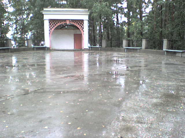 танцплощадка с колоннами в духе советского неоклассицизма между санаторием "Еловое" и "Сосновая горка". Покрытие бетонное.